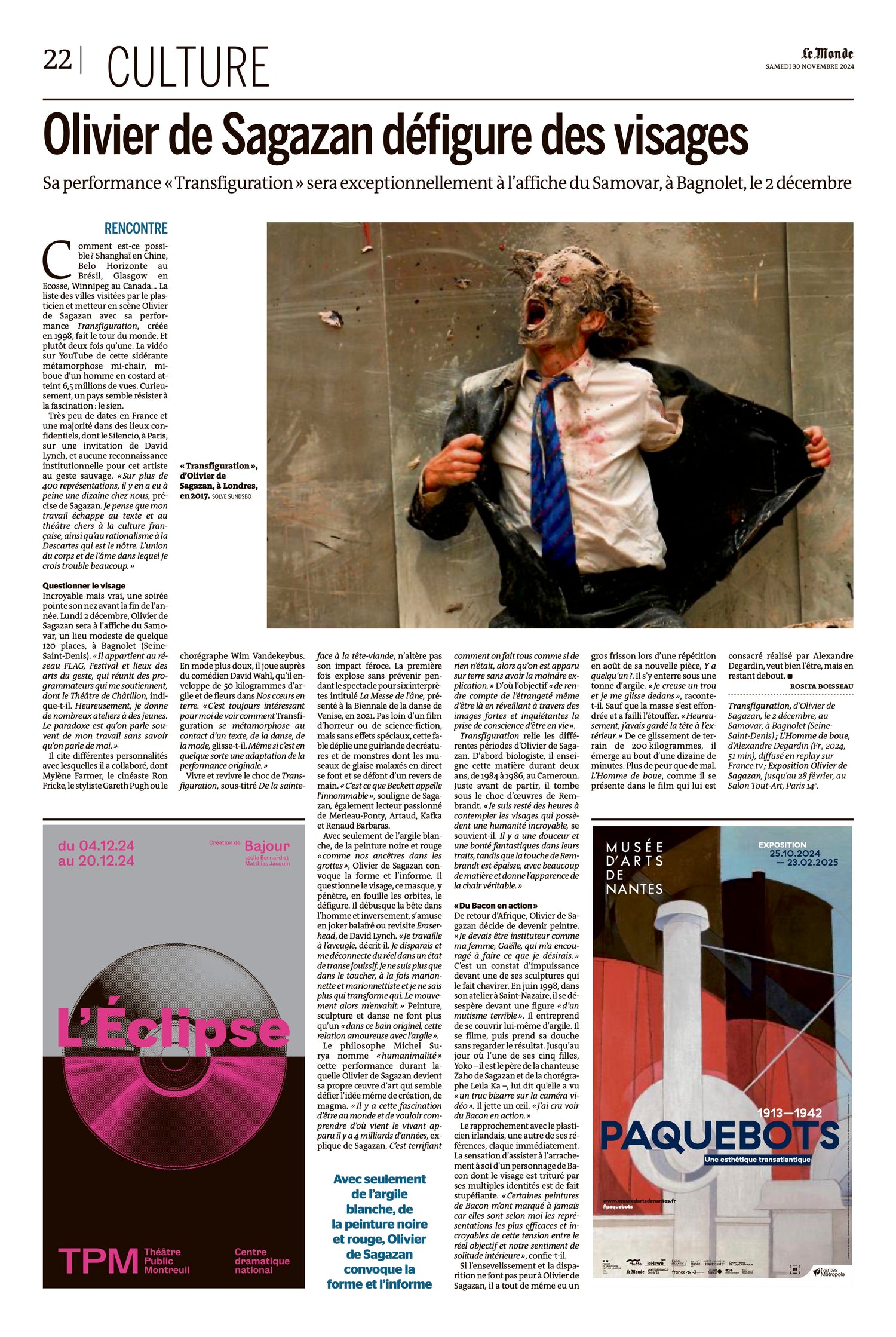 EXPOSITION Olivier de Sagazan. "De la Saint-face à la Tête-viande