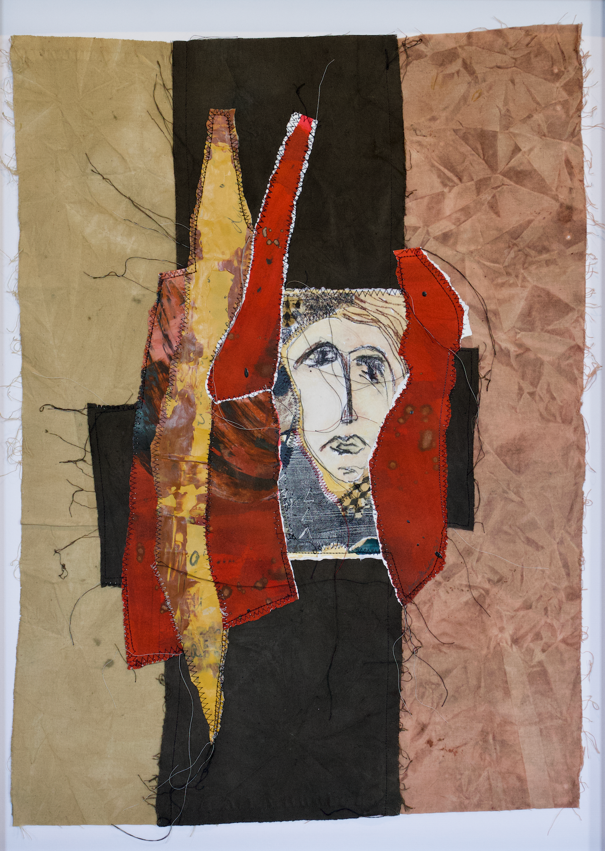 Tels des lais délicatement touchés et piqués, les oeuvres de Mustafova dévoilent des peaux qui se mêlent aux tissus, des dessins altérés par le temps. L’aiguille tisse un va-et-vient entre son parcours et celui de chaque spectateur, les fils de couture émergent des tableaux, appelant à une continuation de l'histoire, tandis que les épingles qui les retiennent évoquent leur potentielle évasion, fragilité et impermanence. Les chutes de tissus et toiles de jute, marquées par le temps et le voyage, portent des imperfections qui deviennent empreintes de récits, permettant à l'œuvre de renaître perpétuellement. En transcendant ces fragments usés, Mustafova métamorphose la mémoire en art, incarnant la nature nomade de ses créations, entre disparition et renaissance. Exposant son propre exil, elle crée une œuvre où le spectateur se déplace dans un mouvement de reconstitution du soi.